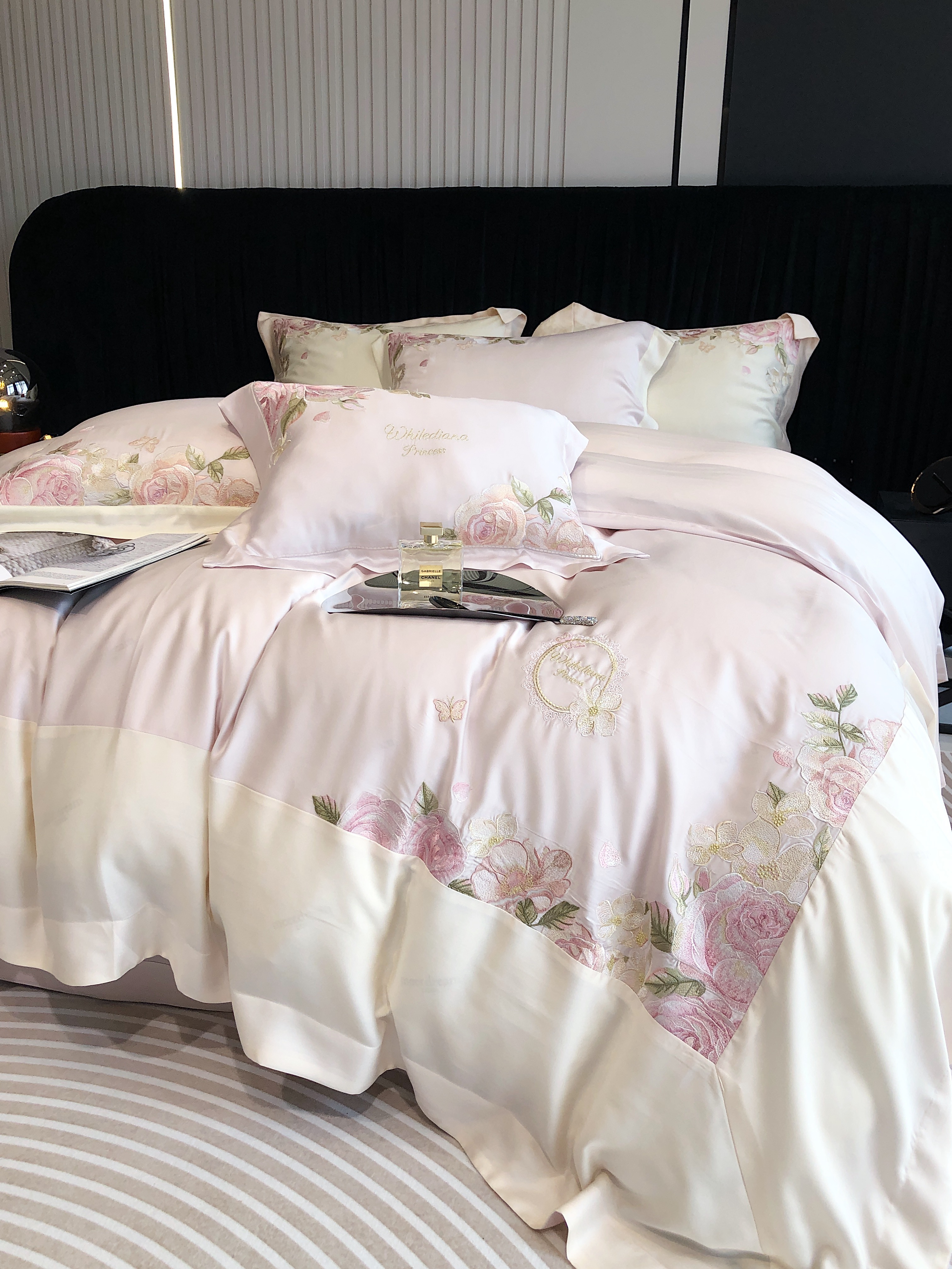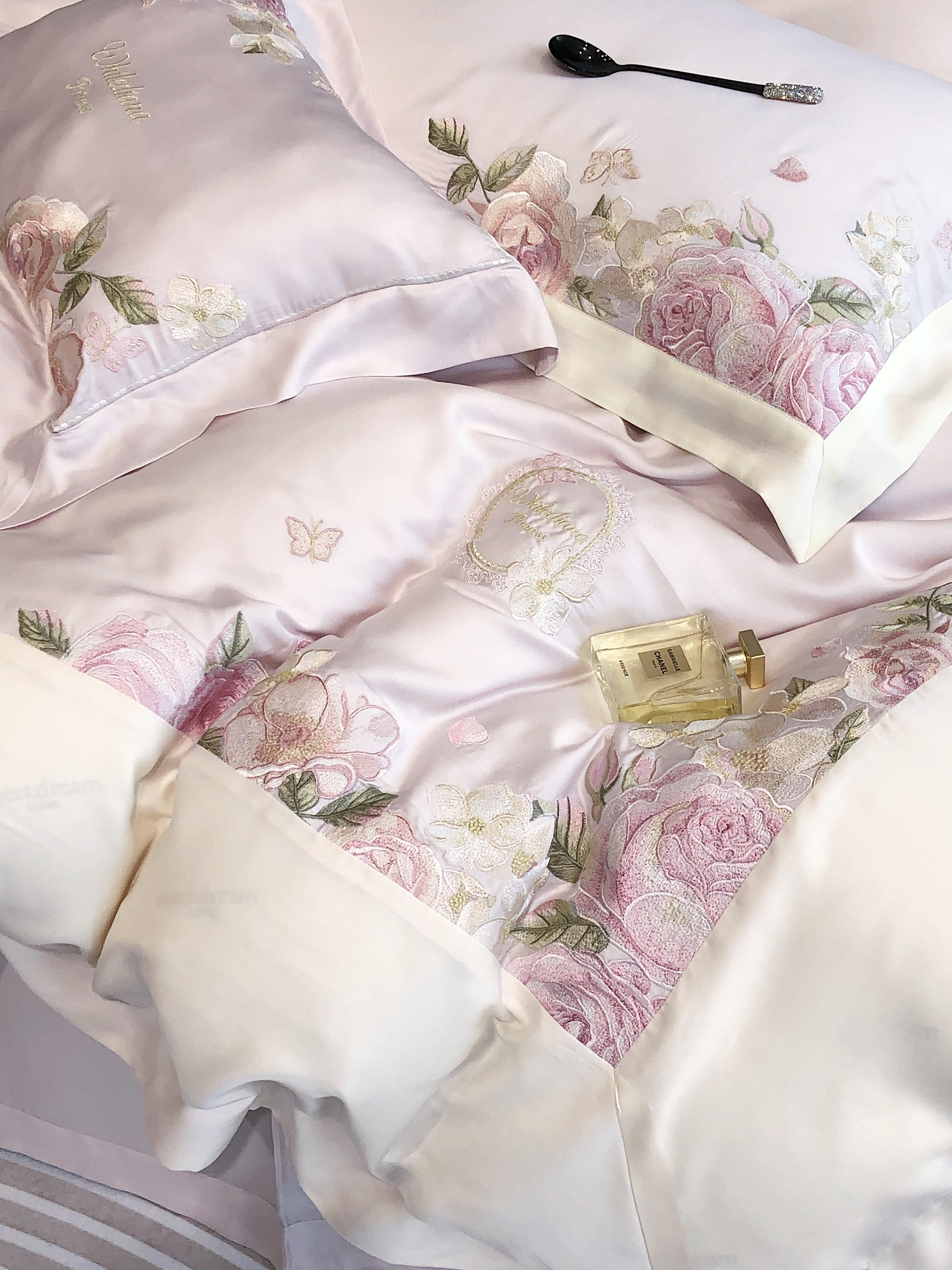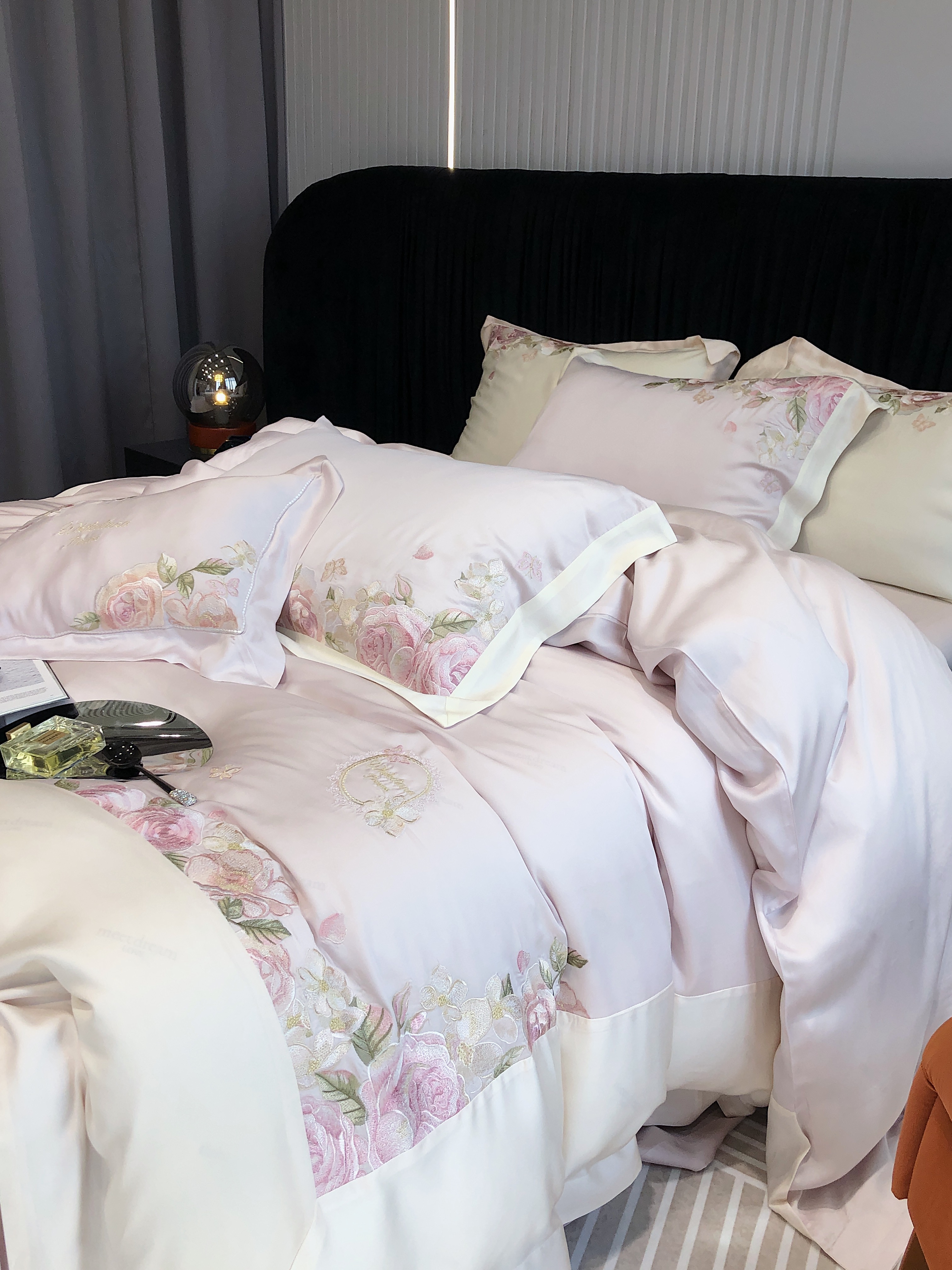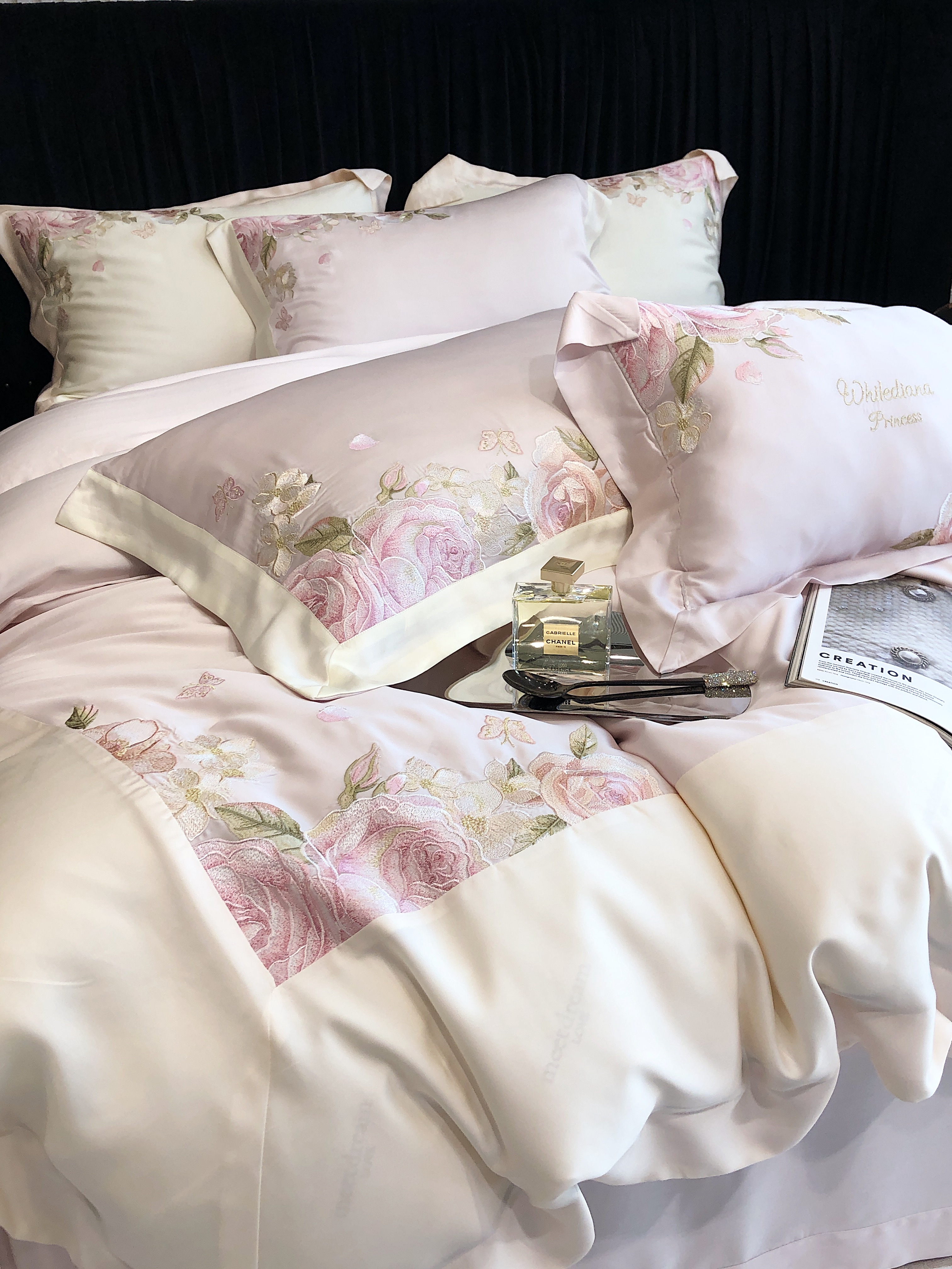100支全棉绣花四件套 莫兰迪庄园-粉