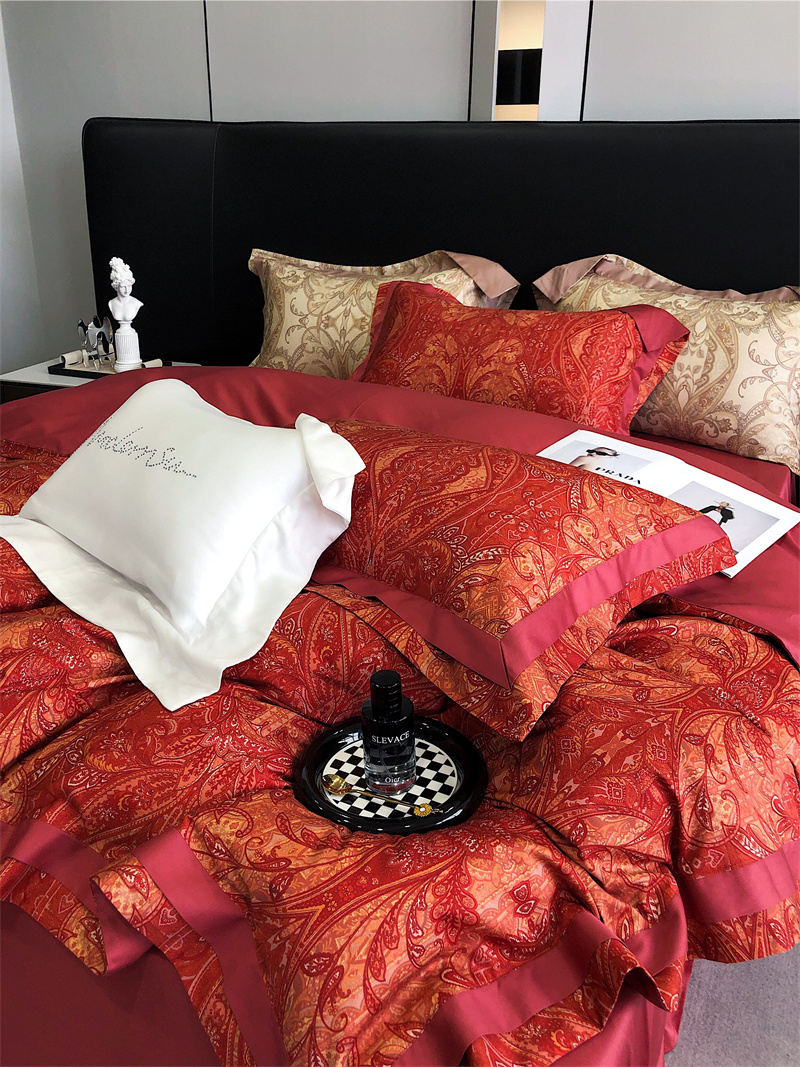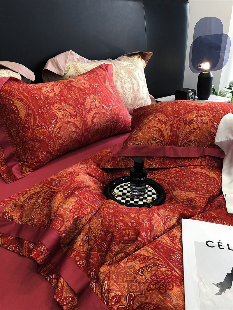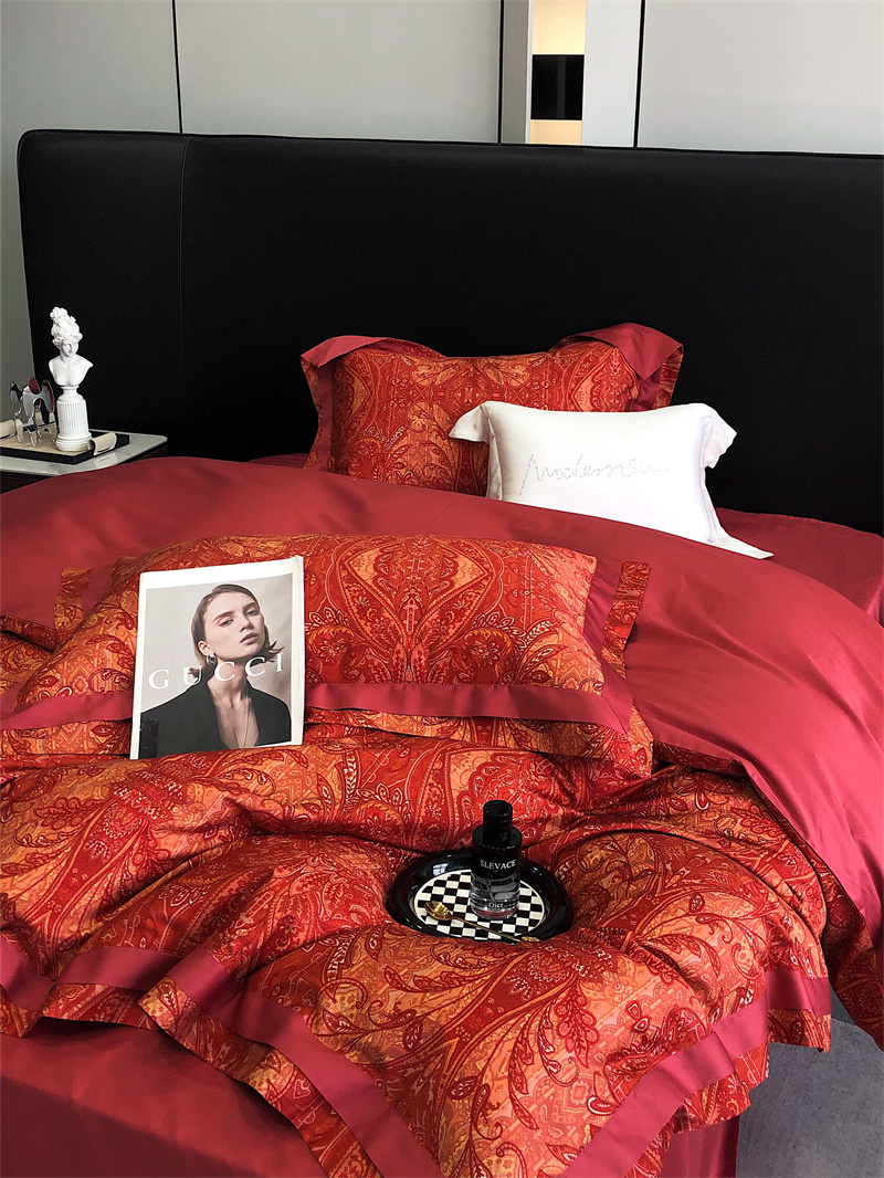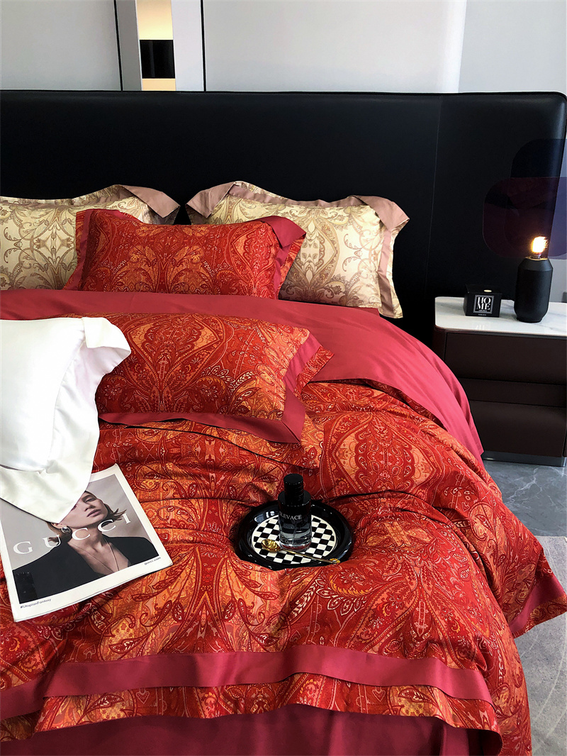 数码印花,花型亮丽,纹案寓意吉祥美好,绵延不断,具有细腻、繁复、华美的艺术特征,成为世界性图案