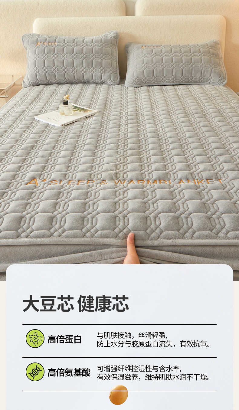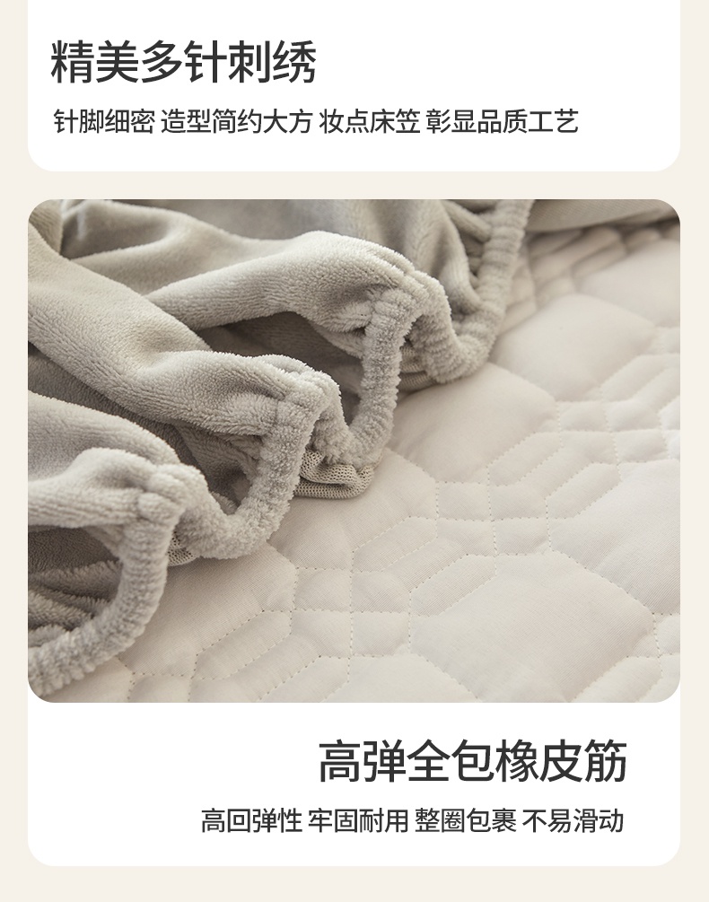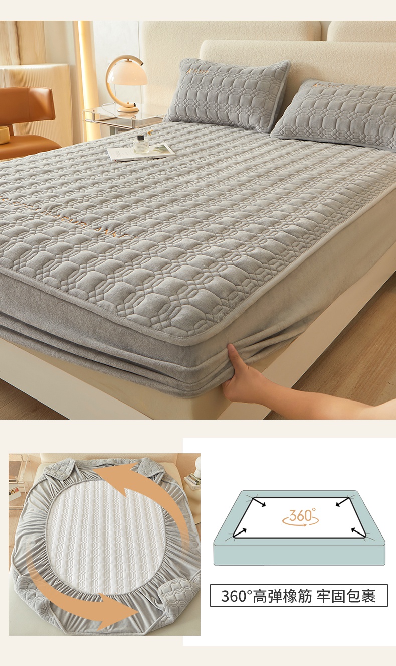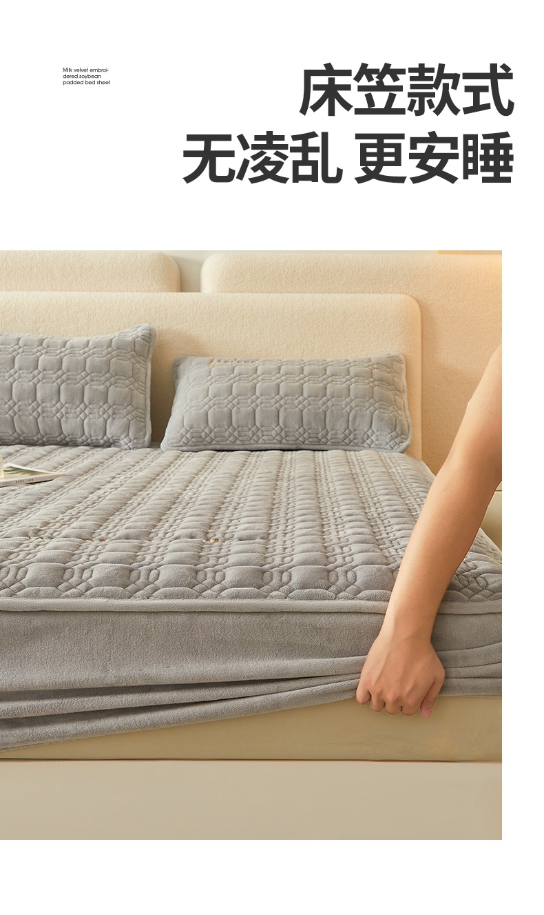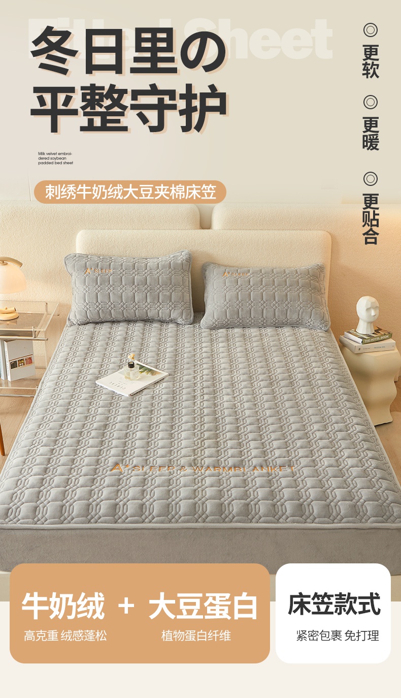 A类牛奶绒刺绣夹棉床笠 A+暮灰