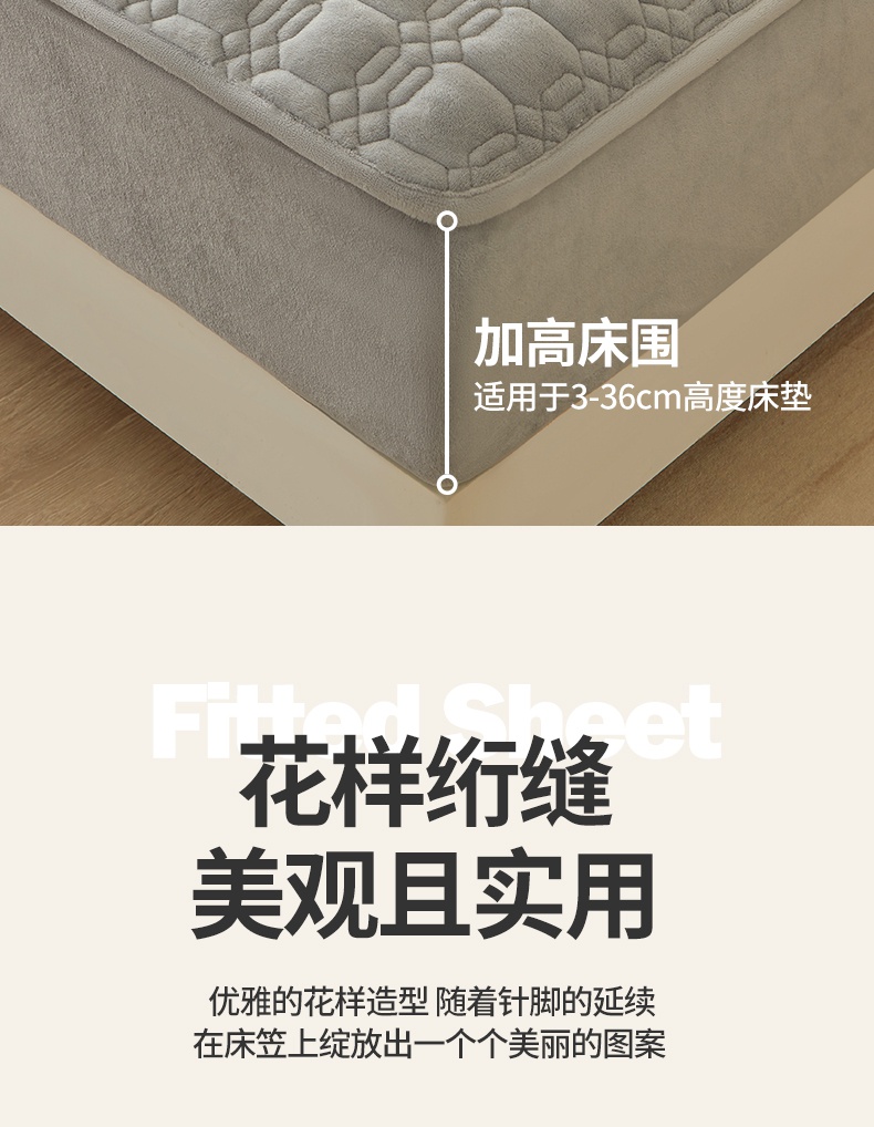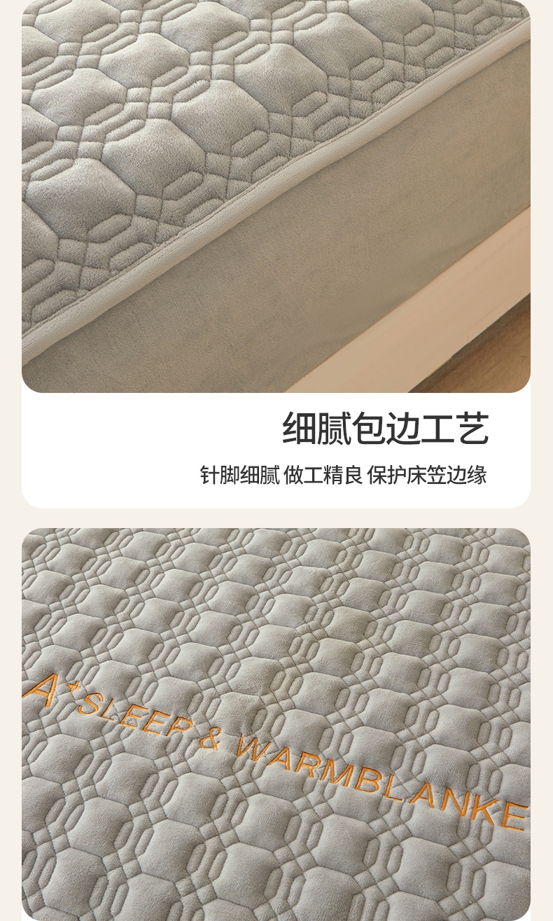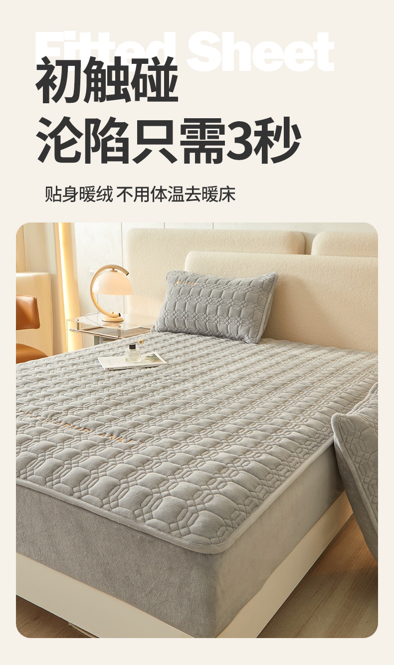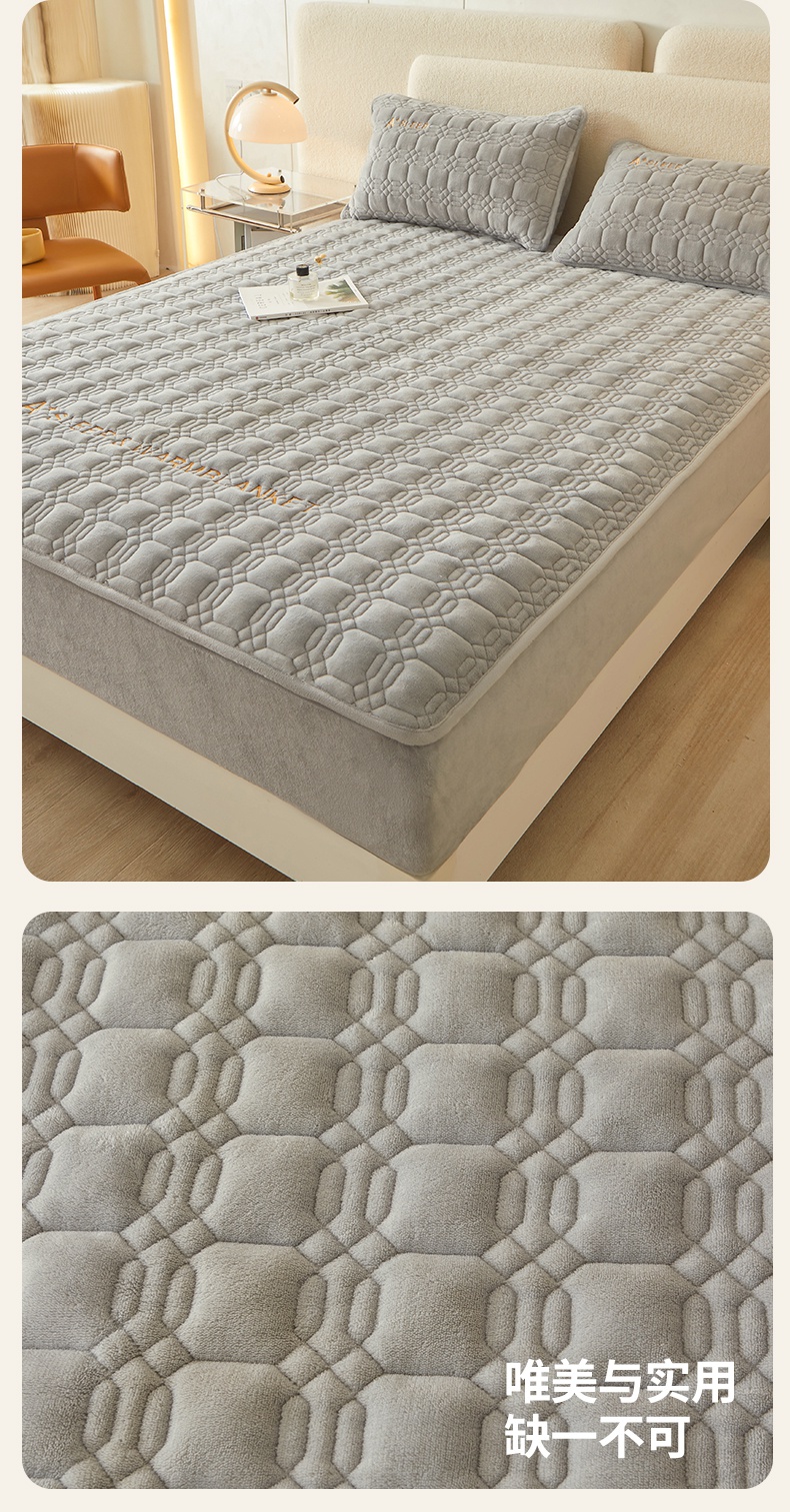 A类牛奶绒刺绣夹棉床笠 A+暮灰