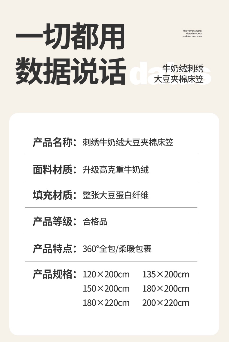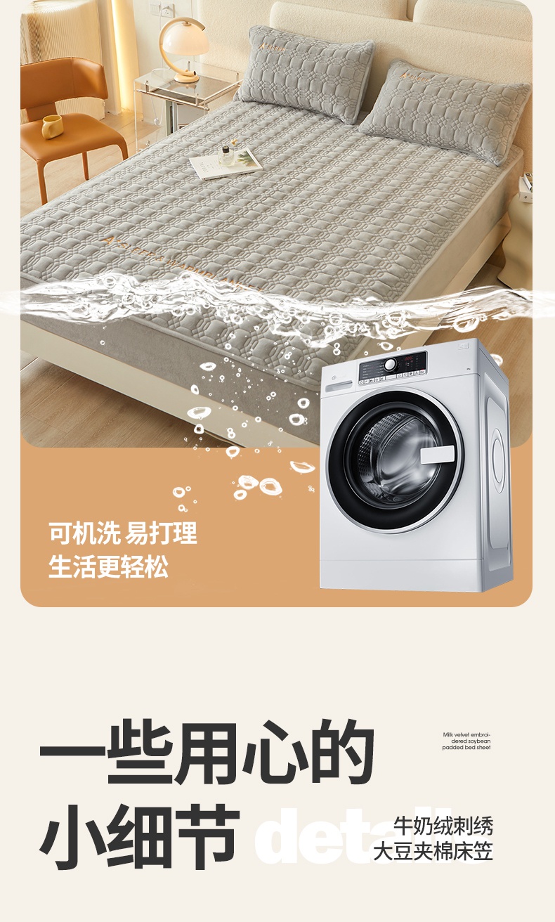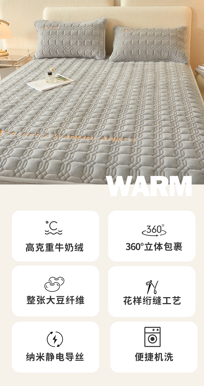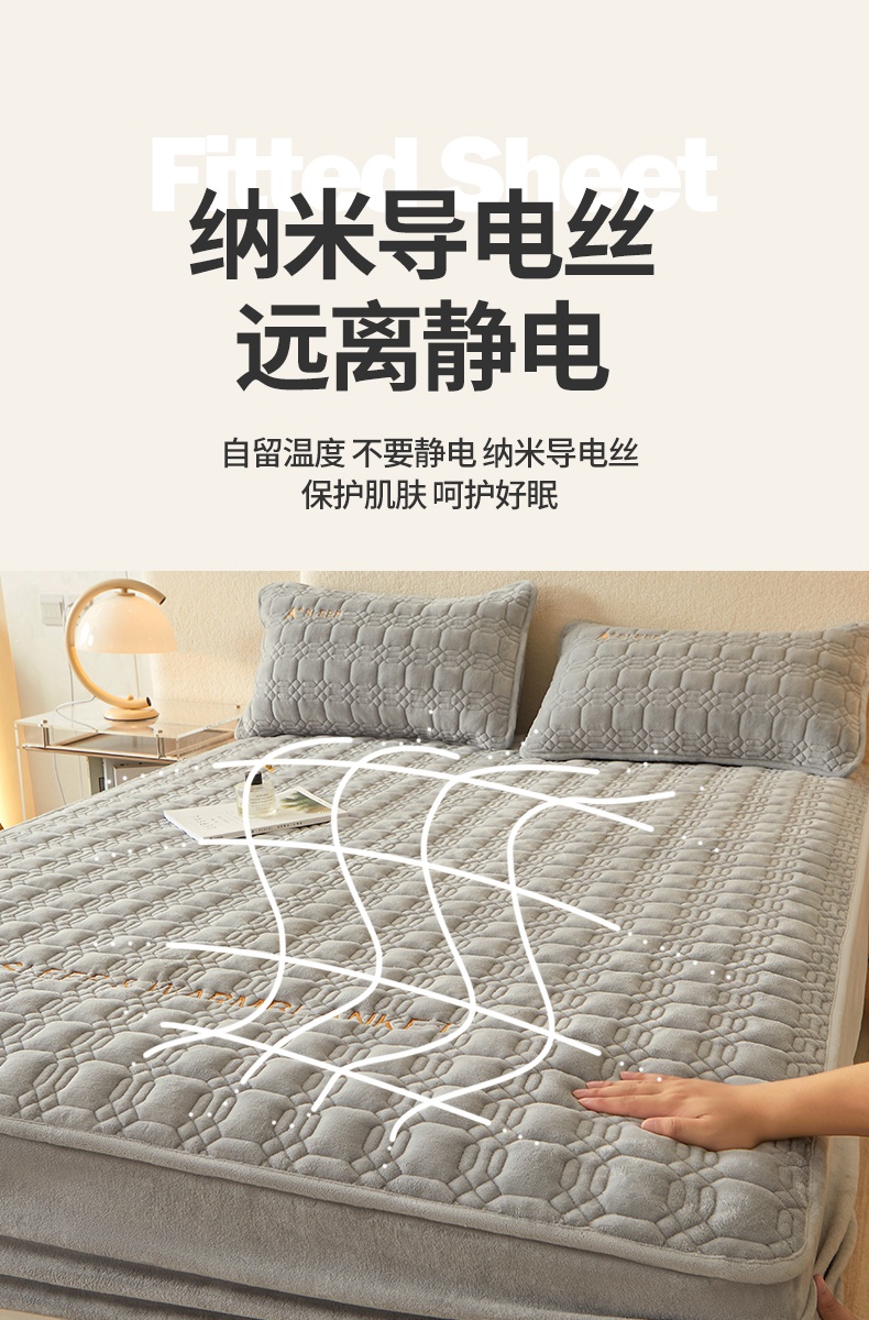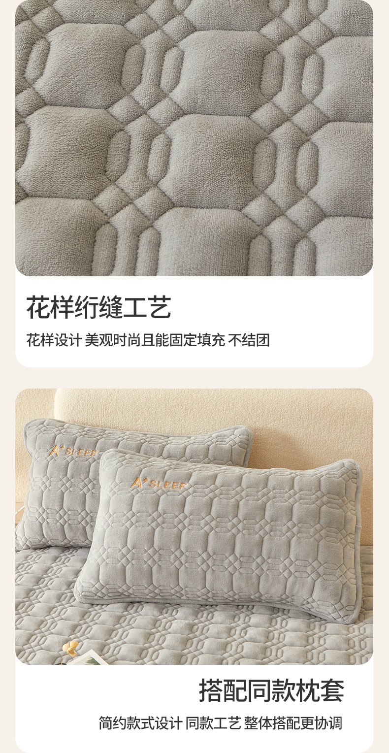 A类牛奶绒刺绣夹棉床笠 A+暮灰