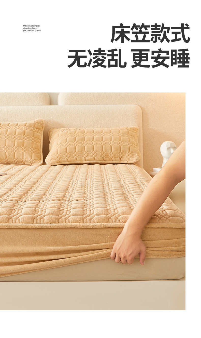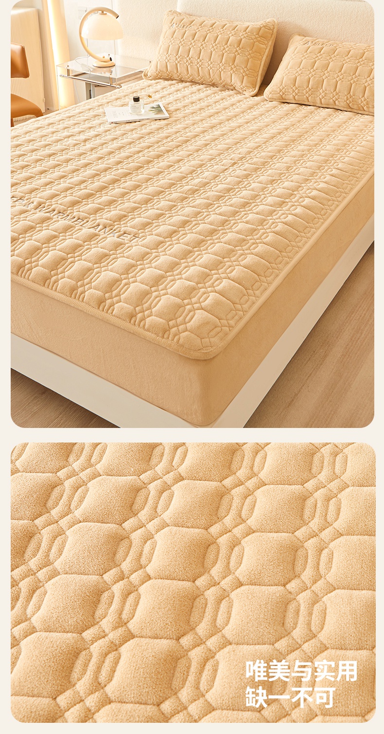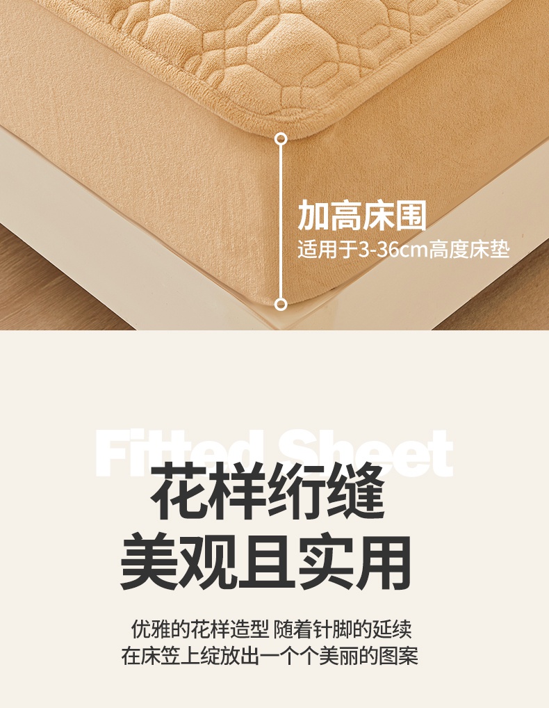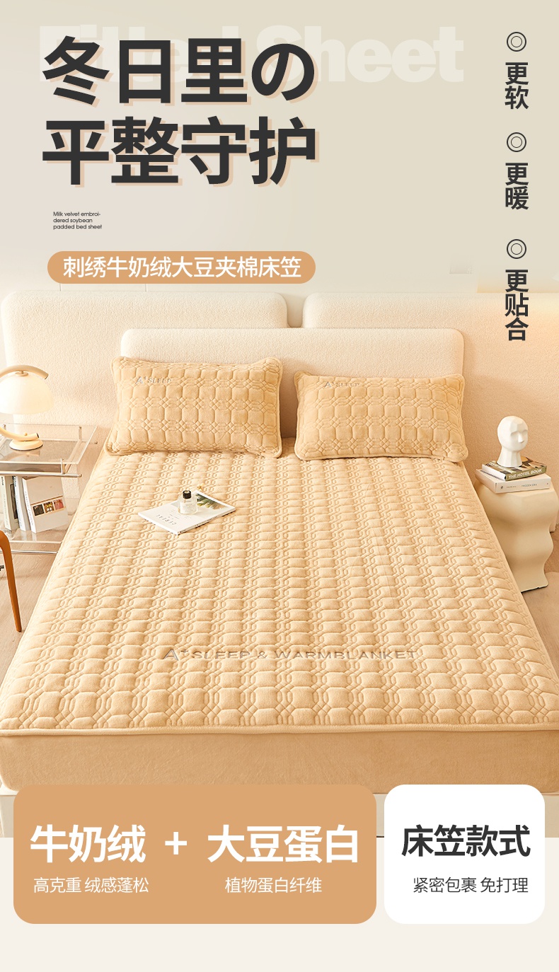 A类牛奶绒刺绣夹棉床笠 A+暖杏