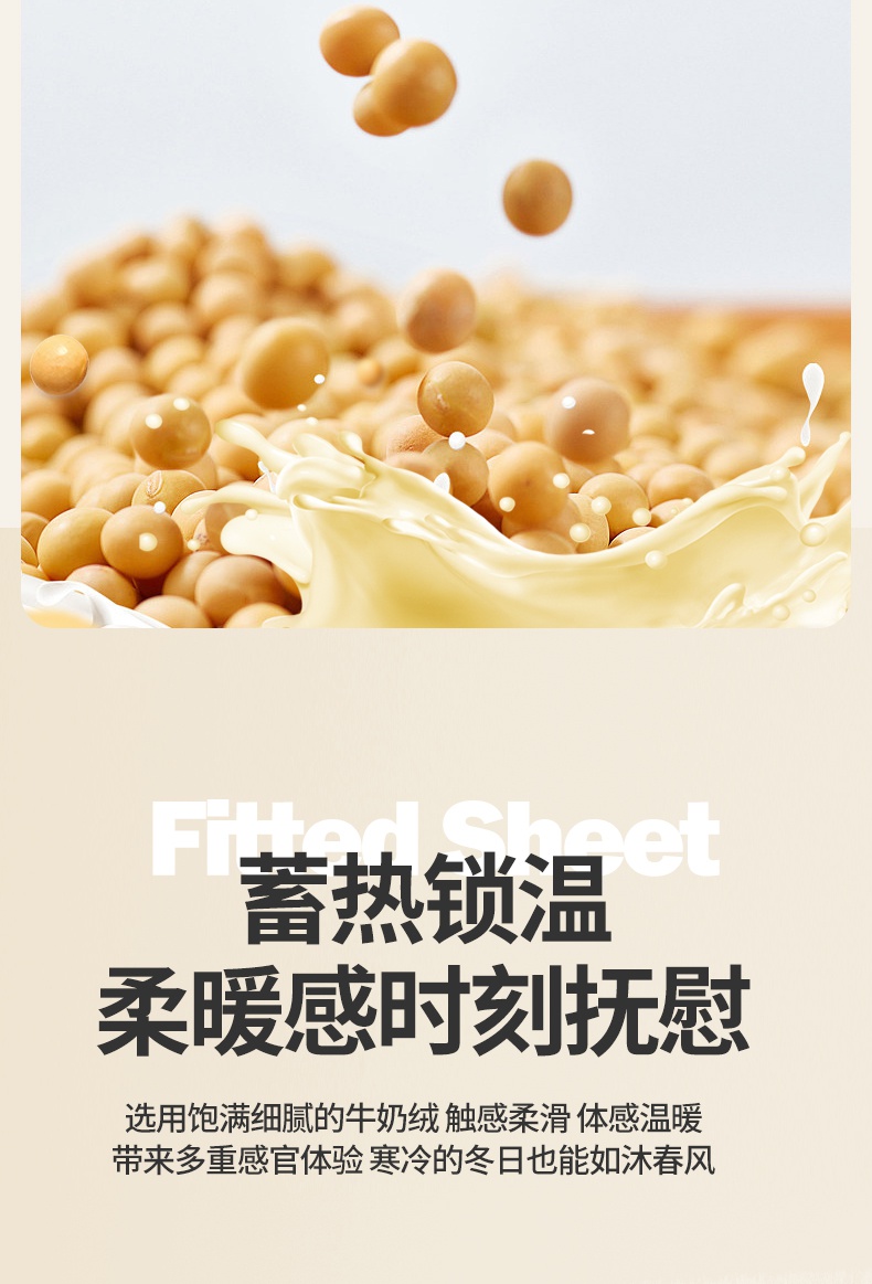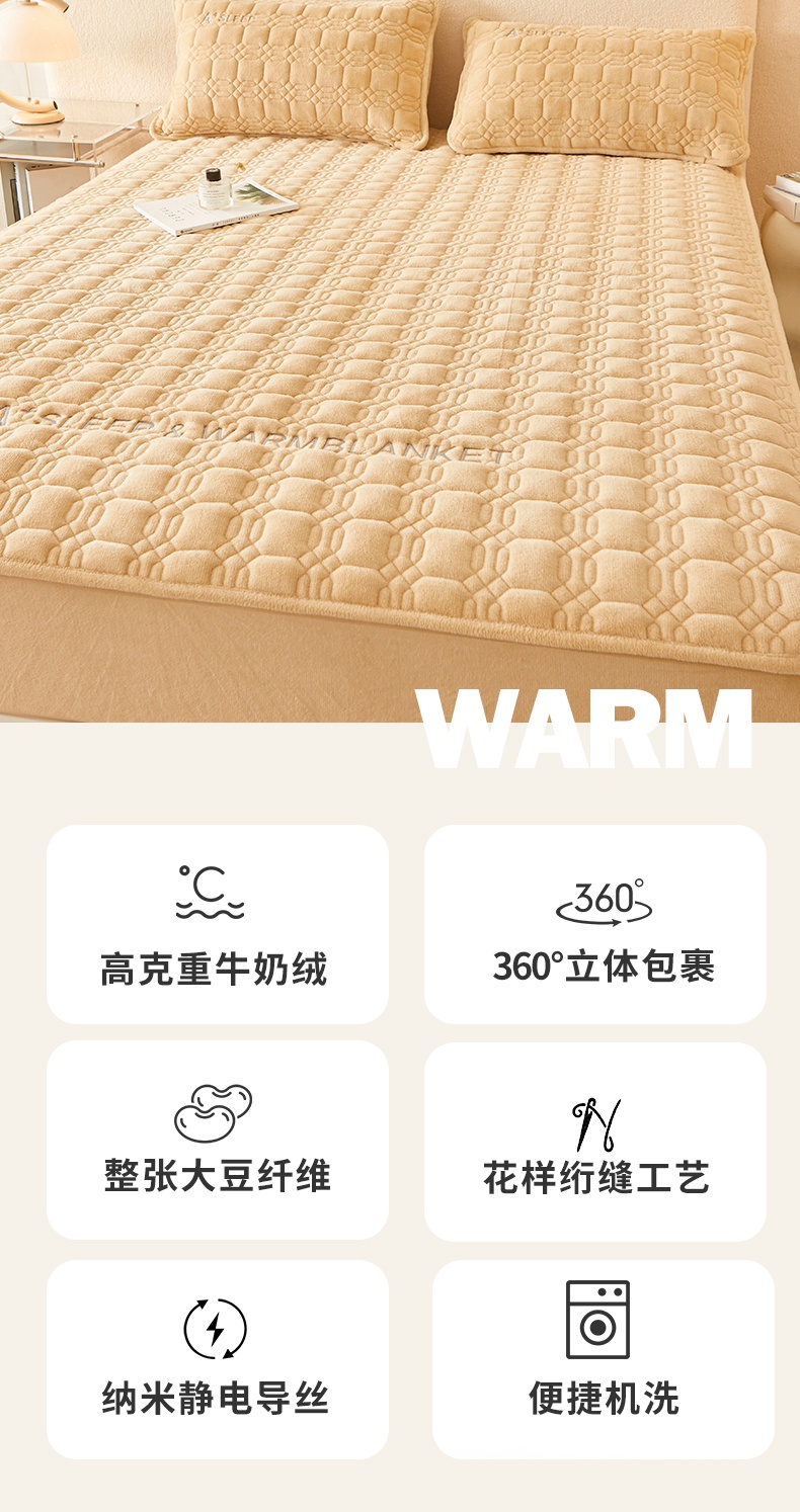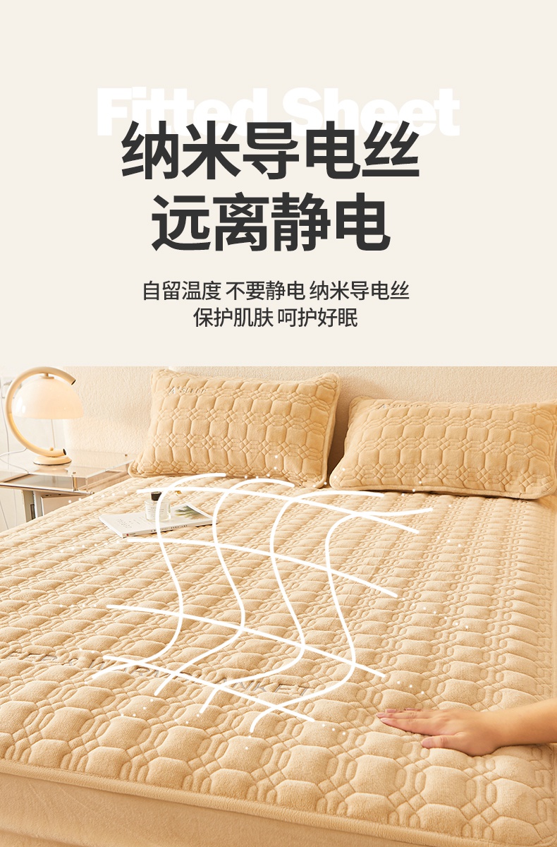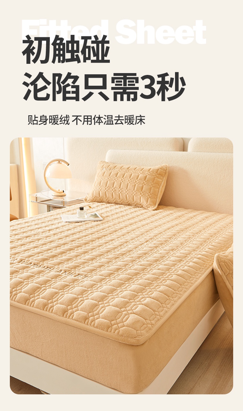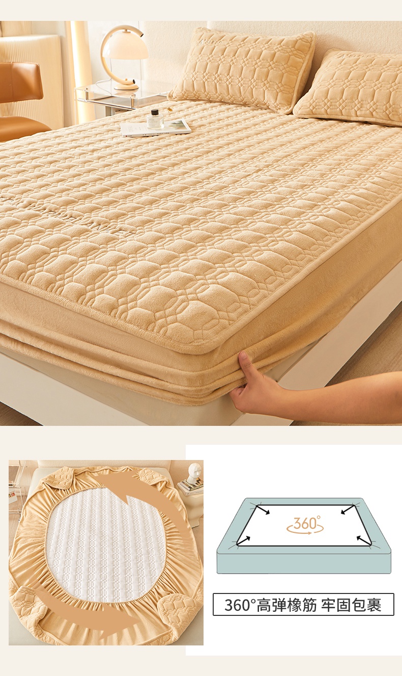 A类牛奶绒刺绣夹棉床笠 A+暖杏
