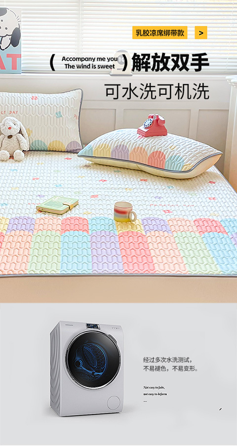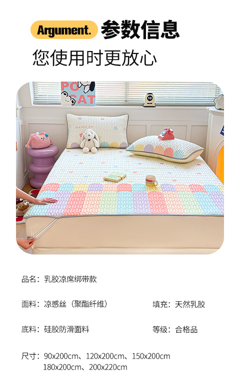A类凉感丝卡通绑带款乳胶凉席 雨后彩虹