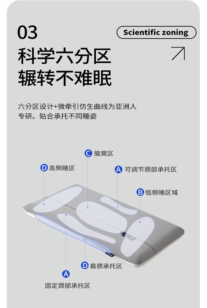 六分区设计+微牵引仿生曲线为亚洲人专研,贴合承托不同睡姿