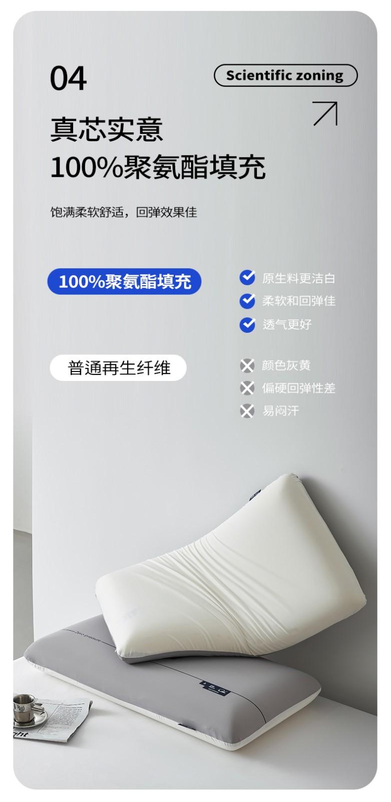 真芯实意100%聚氨酯填充,饱满柔软舒适,回弹效果佳,三重结构,久睡不塌,创新人体工学设计,带来持久好睡感